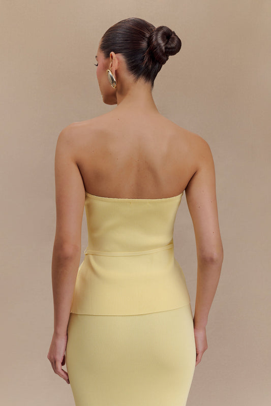 Keaton Strapless Rose Tie Knit Top - Lemon