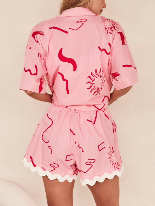 Short-Sleeved Printed Vacation Casual Two-Piece Set