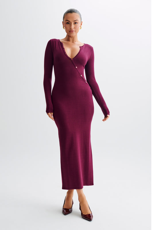 Maria Long Sleeve Buttoned Knit Maxi Dress - Plum