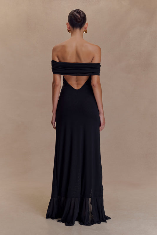 Audrey Off Shoulder Mesh Maxi Dress - Black