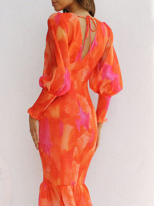 V-Neck Evening Gown Open Back Midi Dress