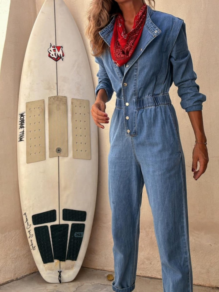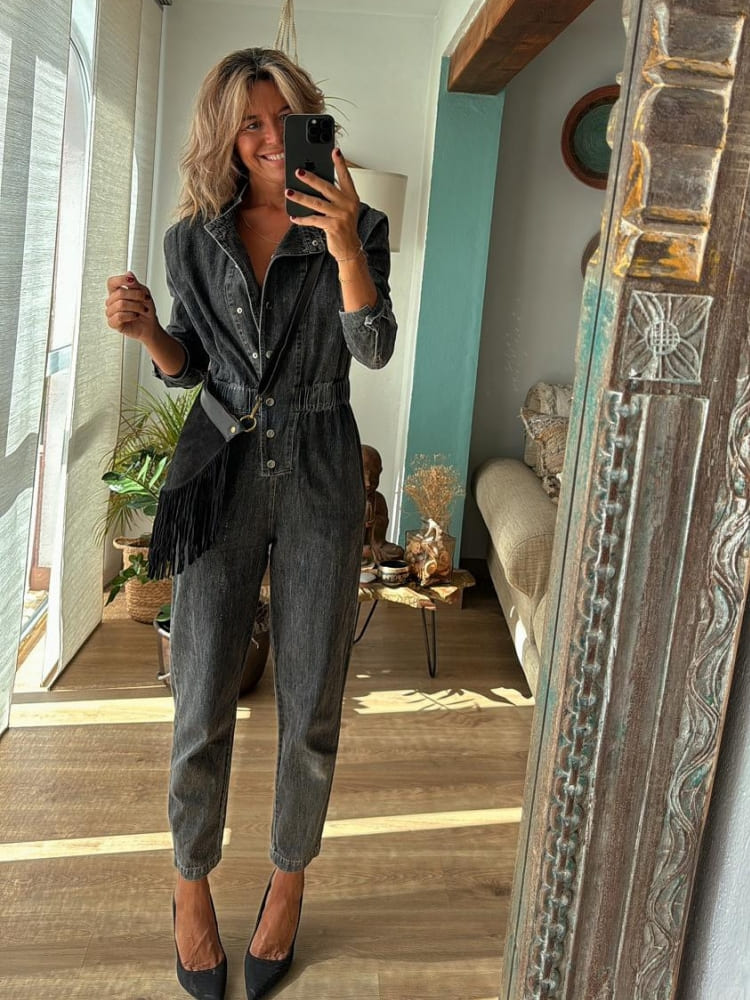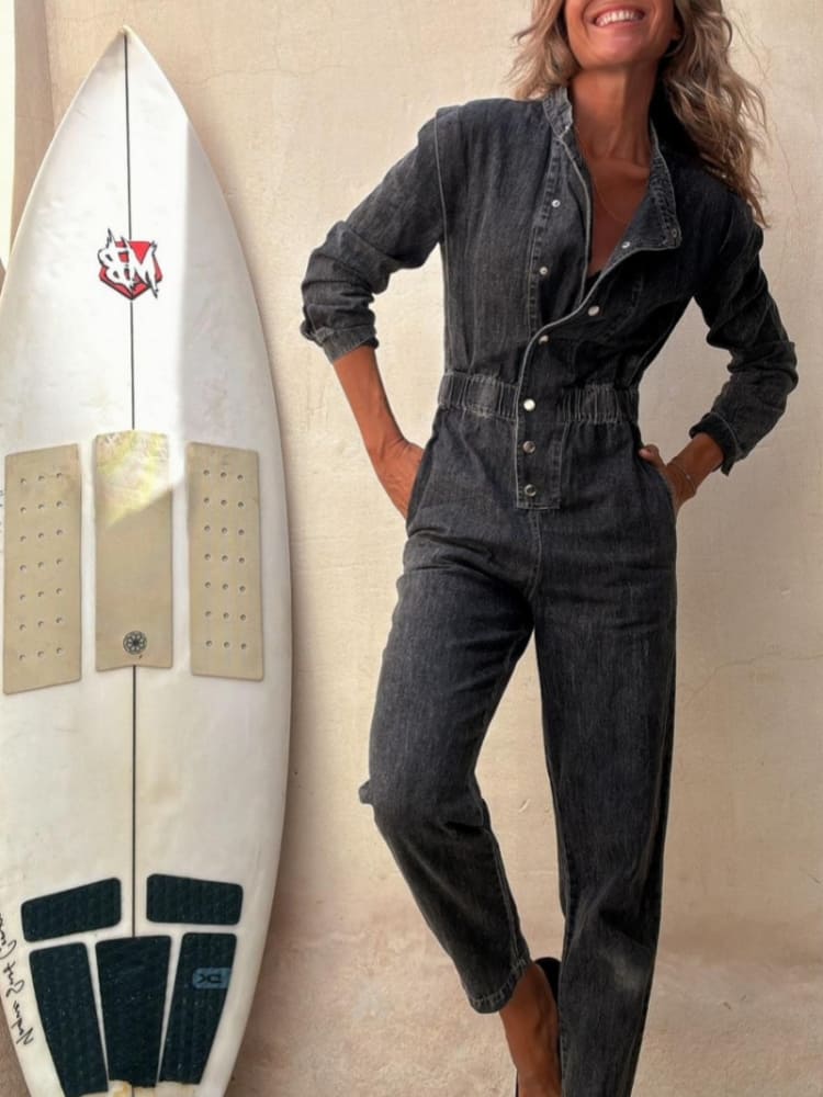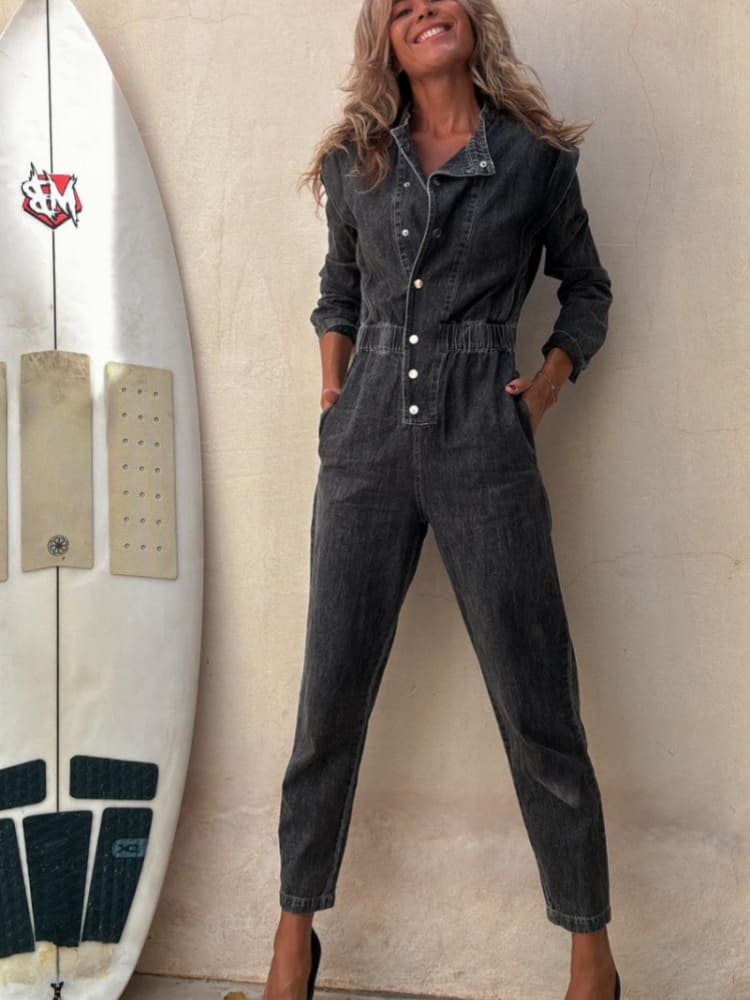 The Washed Denim Jumpsuit is your go-to piece for a stylish and comfortable outfit, no matter the occasion.