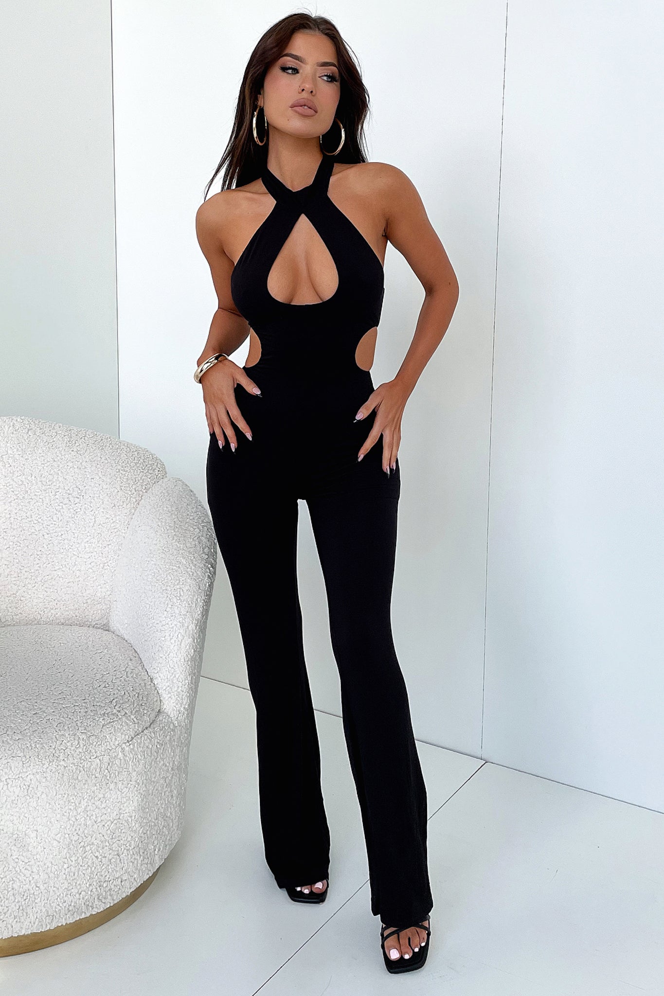 Perfect from head to toe! She offers a soft double lined material, a high halter neck with sleeveless cut, cut out detail between the bust and at the sides of the waist, a bodycon fit, flared bottoms and an invisible back zipper. Style this babe with black heels and gold jewellery for a sexy cocktail fit. DOLLHOUSELONDON