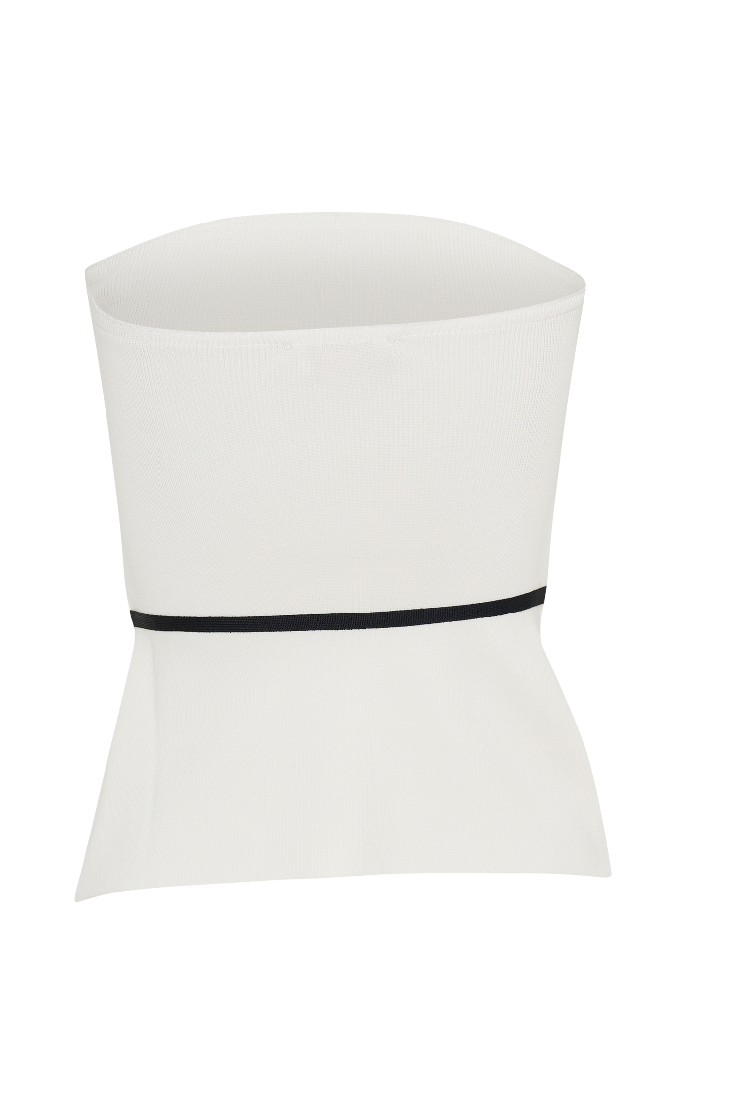 The KEATON Strapless Rose Tie Knit Top is a timeless addition to your wardrobe, offering effortless style with a refined touch.