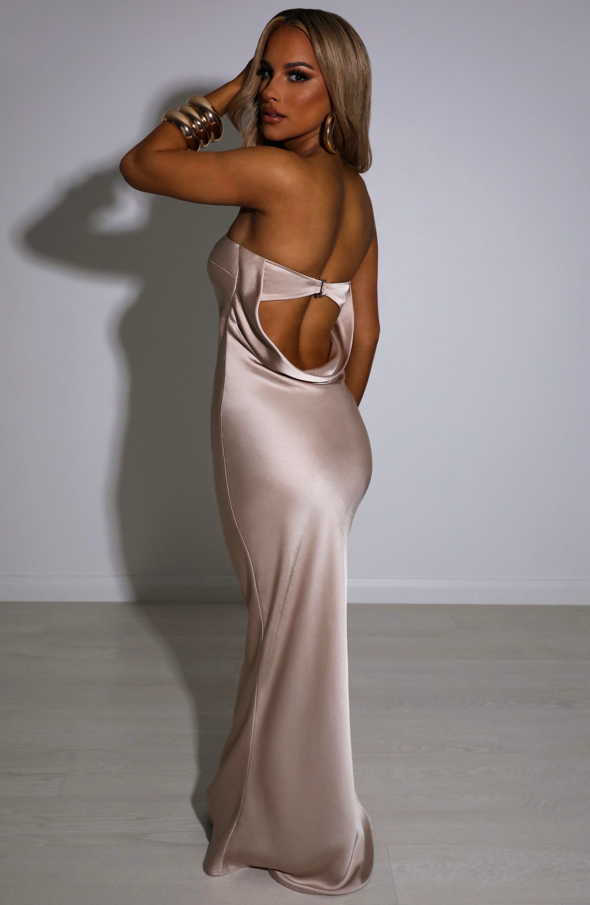 The Champagne Satin Maxi Dress is the perfect balance of sophistication and allure. Crafted from luxurious polyester satin, this dress features an adjustable hook and eye fastening and a fitted elasticated bust for a customizable, secure fit. The low cowl back adds a sultry touch, while the design moulds to the body, tapering at the knees and flowing into a beautiful, flattering finish at the hem.