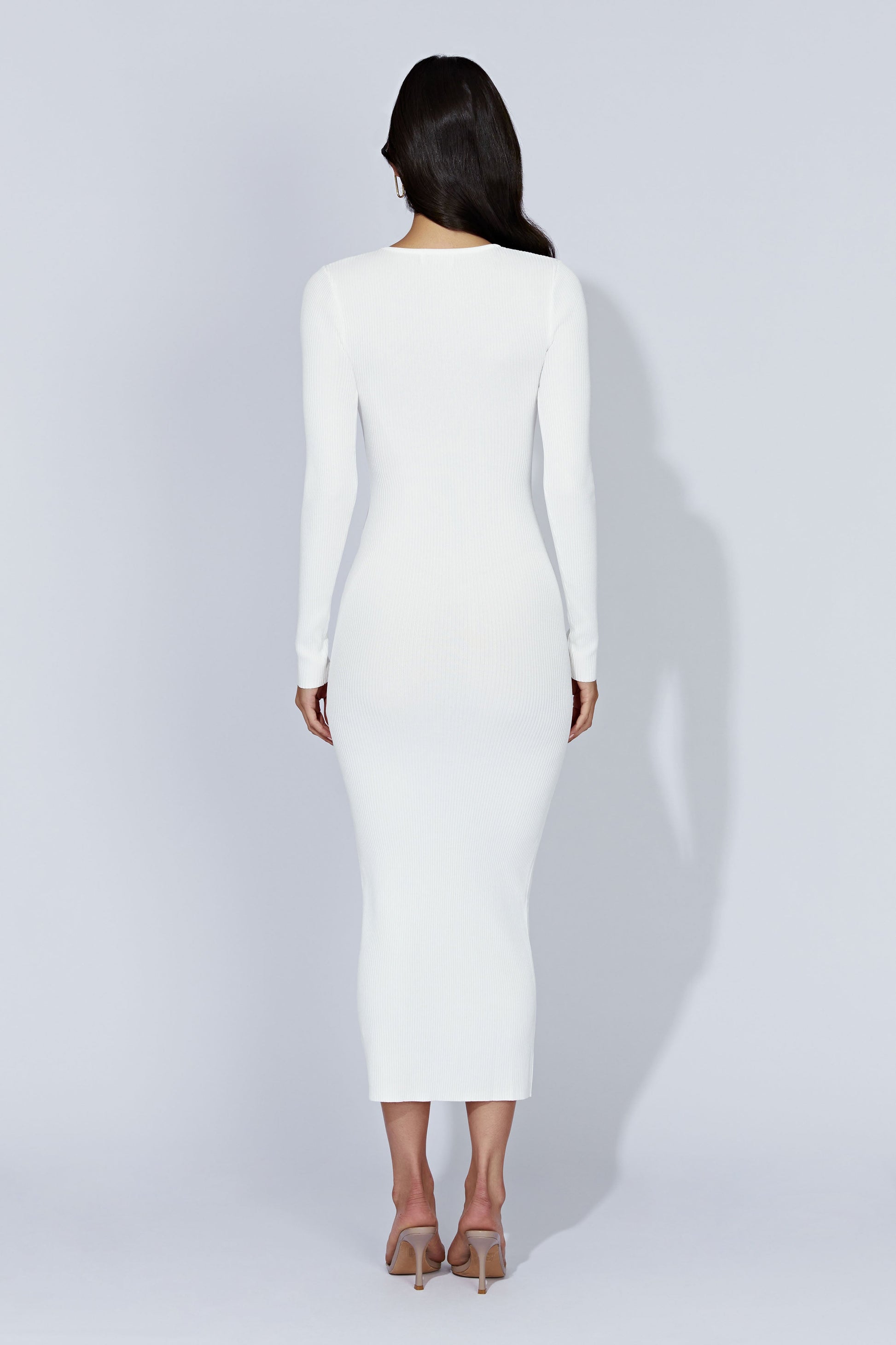 Elegant, refined, and unapologetically confident, the ROWEN Ribbed Knit Midi Dress is a wardrobe staple for party nights and romantic dates. With her long fitted sleeves, high neckline, and clean raw hem, Rowen brings sophistication and allure to every occasion. Designed with soft ribbed knit fabric, this slip-on midi dress hugs your curves and highlights your silhouette, offering both comfort and style.